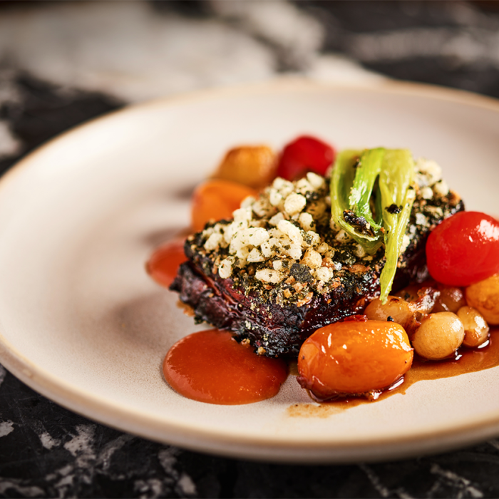 For veggies, diners can indulge with the Wok Fried Pakora Manchurian with peppers, ginger soy and chilli. The Tomato Pho with spiced tomato consommé, heritage tomato, labneh, stuffed courgette flower, chive oil and rice noodles or the Roast Peach Massaman Curry. For a taste of Thailand, try the Massaman Curry of Smoked Short Rib of Beef with pak choi, charred potato and bone marrow burnt ends, or enjoy Mamasan classics such as the Crispy Chilli Beef or the Sweet and Sour Pork Belly.