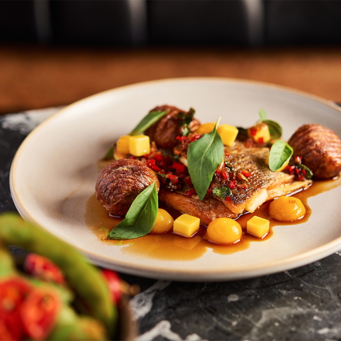 Fish dishes on the main menu include the Pad Thai of King Prawn & Crispy Soft-Shell Crab, Shrimp and Soft-Shell Crab Burger, Green Curry of Monkfish and King Prawn, Pan Fried Sea Bass and Caramelised Black Cod. For the ultimate decadence, try the Whole Lobster Fondue sharer with tempura lobster claw, grilled tail, thai spiced thermidor fondue and served with a side of fries.