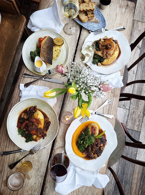 Celebrations begin in the morning with a three-course set breakfast available from 9am-11.45am priced at £35 per person. Guests will be welcomed with a champagne cocktail on arrival, choosing from a Kir Royale or Elderflower Spritz, followed by homemade pastries, a freshly cooked breakfast, sweet treats, and tea and coffee. Breakfast options include a Full English, Vegetarian, or Vegan Breakfast, all freshly prepared to order using the finest quality ingredients.