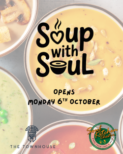 Soul in a Bowl runs this winter at The Townhouse: We host Soul Kitchen Chester Charity members in our kitchen for real, on-the-job experience. Our professional teams trains the members to make fresh, homemade soup served daily with Soul Kitchens Second Bite incitive shortbread with soul. Price: £5. We donate £1 from every order to Soul Kitchen Chester. Dine-in or takeaway available. Daily soup board rotates (veg/meat options); full allergen info on site. Perfect for a warm cosy lunch
