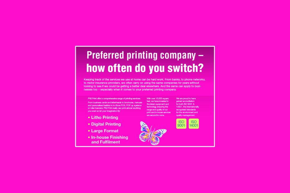 From business cards and letterheads to brochures, manuals and personalised leaflets to In-Store POS, POP up systems or roller banners, PS2 Print really can print almost anything you want so let your imagination fly!