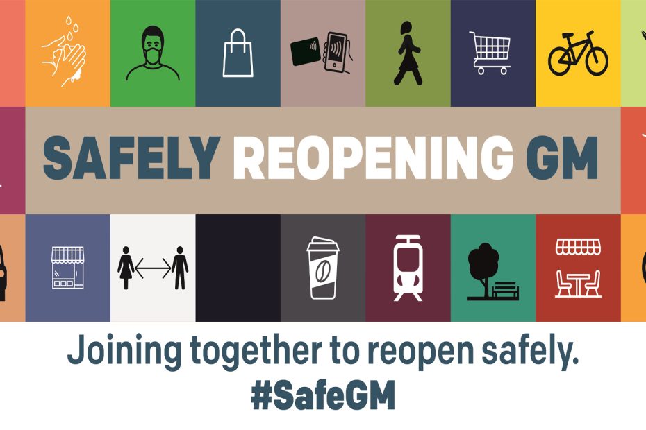 Campaign across Greater Manchester on how to stay safe. Business owners and employees urged to follow Safely Reopening GM guidelines.