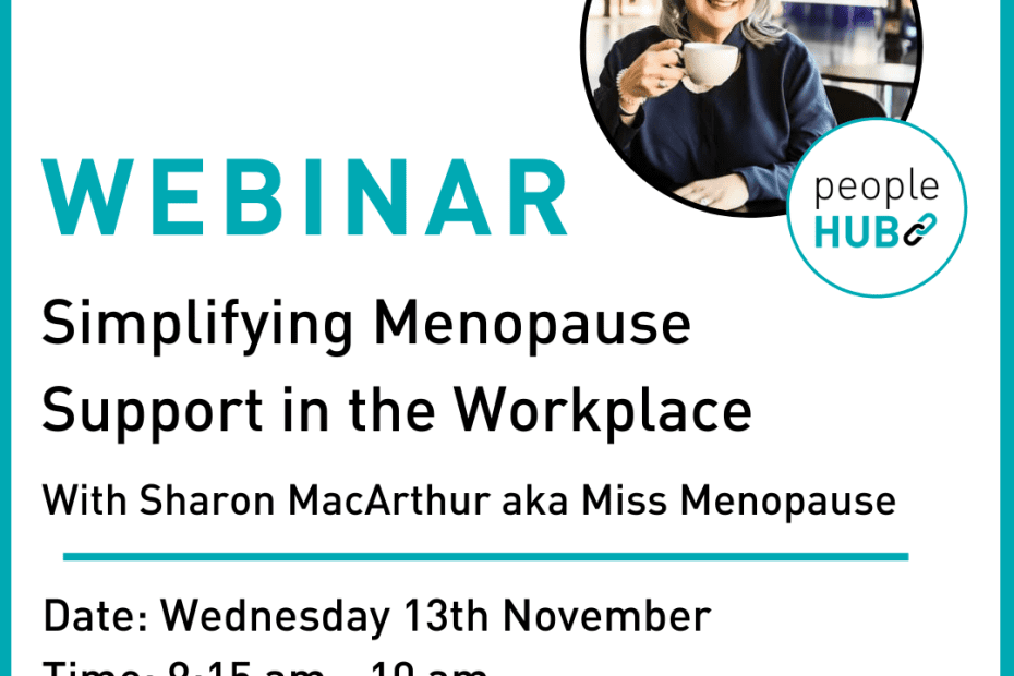 Upcoming webinar with Sharon MacArthur, also known as Miss Menopause, who will explain why simplicity is key when embedding menopause support into an organisation. Details… Read More »peopleHUB November – Simplifying Menopause Support in the Workplace