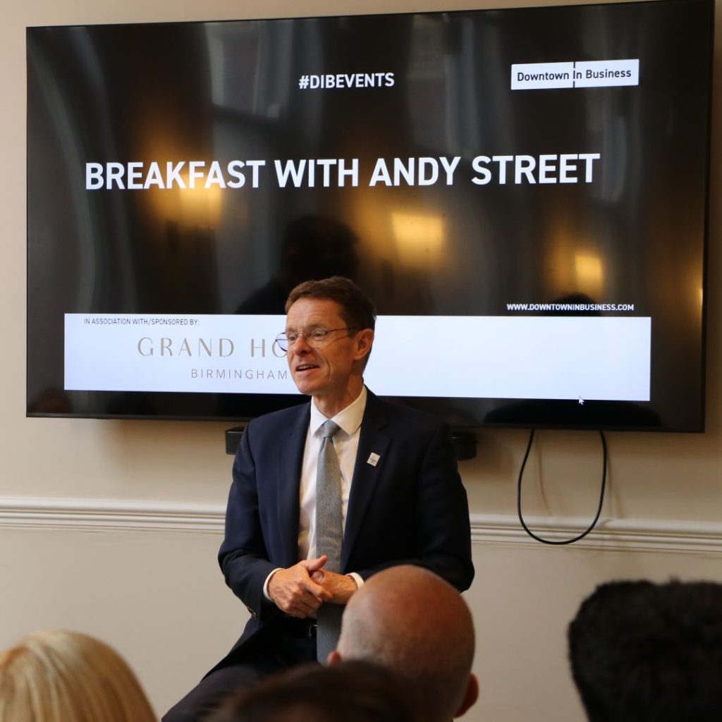 On Tuesday 12th July 2022, Downtown in Business Birmingham will host an exclusive breakfast forum with the mayor of the West Midlands, Andy Street at The Grand Hotel.