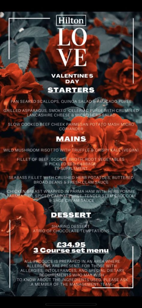 You are here > Home » News » Hospitality » Love Valentines day at Hilton Liverpool