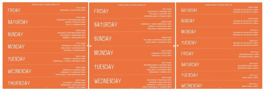 General Manager, Joe Reilly said “We are looking forward to welcoming football fans for the Euro’s no matter who they are supporting. Our venue is the perfect spot to watch this tournament unfold and we will have live music on after games as well.