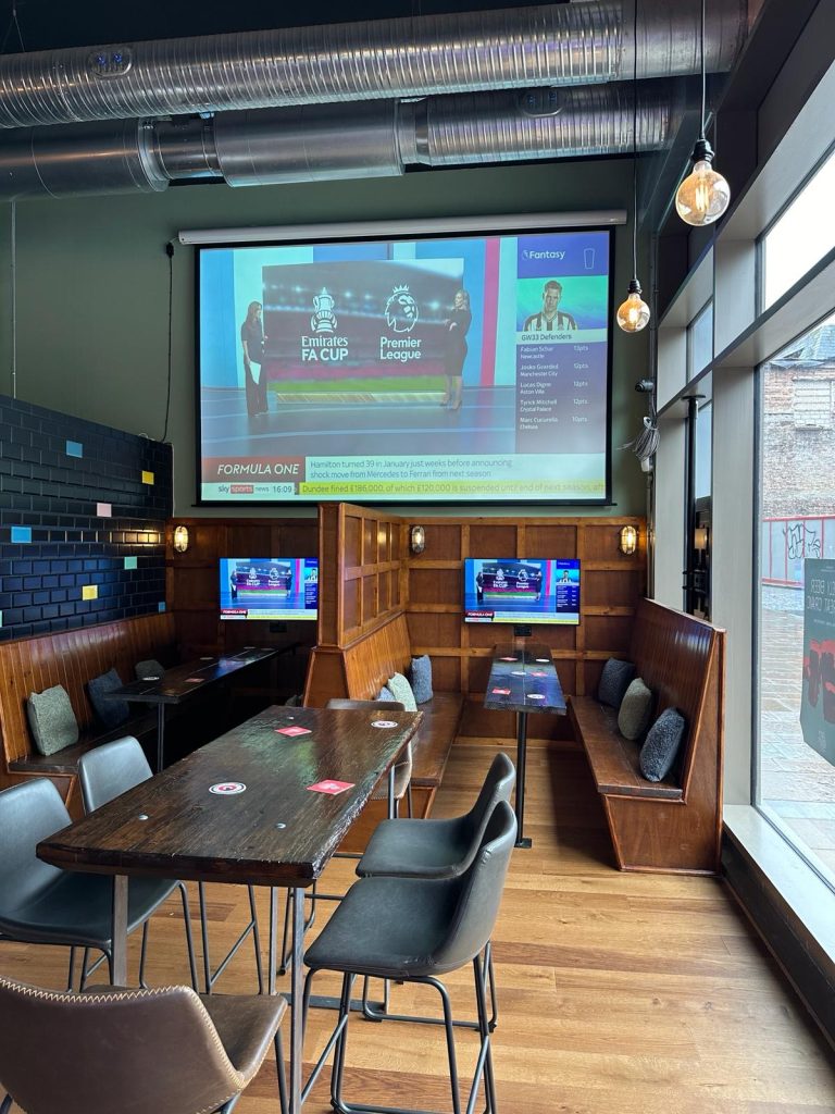 The 2,500sq ft venue which has seating for 120 guests with standing room for an additional 50 people will be making the most of the 10 ultra HD TV’s, fully integrated sound system, 4 snugs with private screens and a giant 3 meter screen as they welcome the start of the Euro’s 2024.