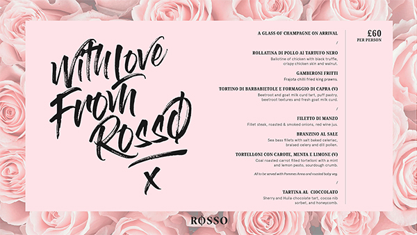 Treat your valentine to a special meal at Rosso from £60pp.