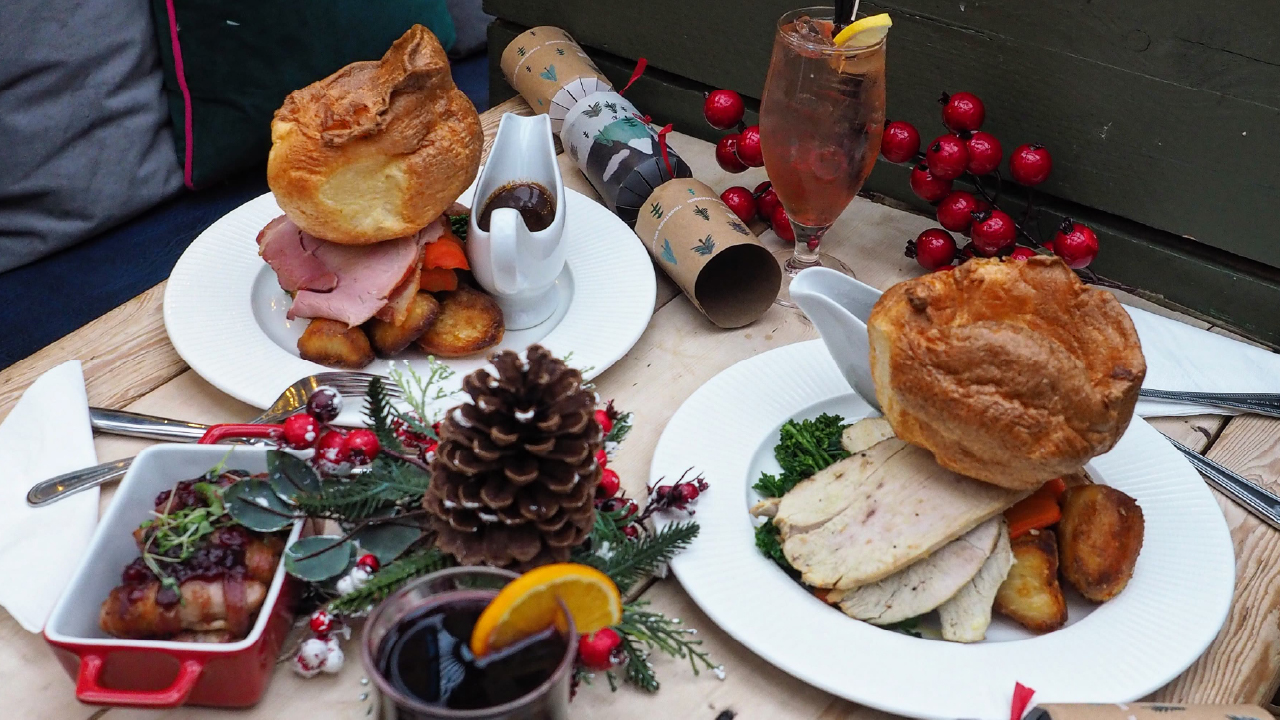 Starters include the ever popular Stornoway black pudding Scotch eggs, Wild mushroom parfait, King prawns or Beetroot hummus. The Festive Roast, includes Salt-aged Hereford beef rump with Yorkshire pudding, Rare breed porchetta (£3.50 supplement) stuffed with Cumberland sausage, apple sauce and Yorkshire pudding or the Wild mushroom and nut roast, with butter beans, chestnuts and cranberries or the star of the show the Norfolk Black Free-range Turkey with Pork and Leek stuffing and a Yorkshire Pudding. All served with perfectly roast potatoes, maple glazed carrots, green vegetable medley and meat or vegetable gravy.