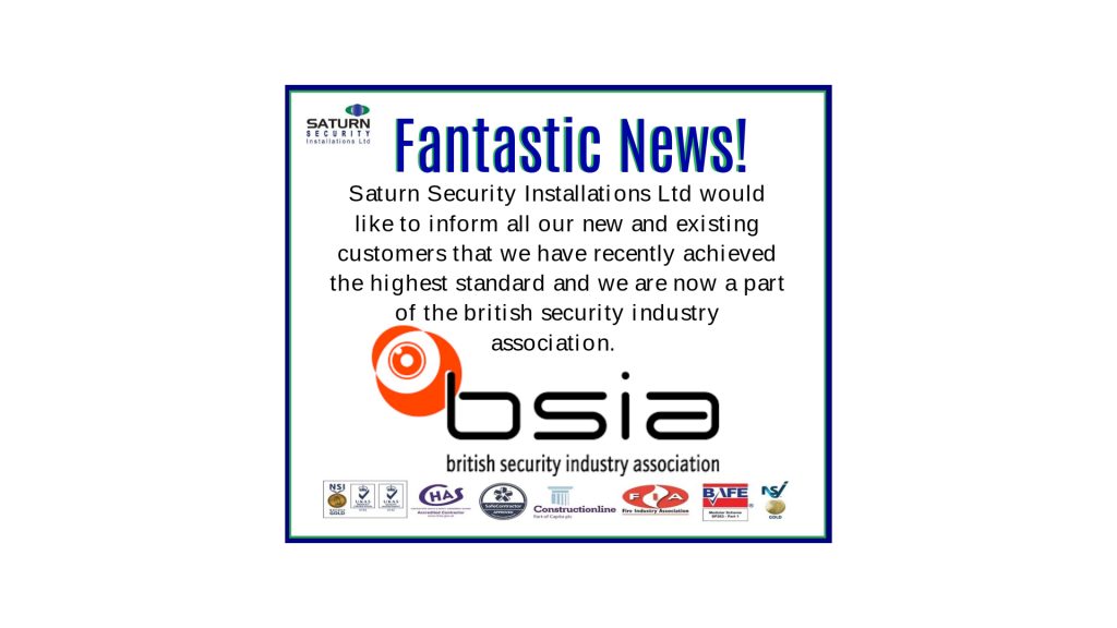 Fantastic news for Saturn Security 03/05/2019 Saturn Security Installations Ltd are now part of the British Security Industry Association. READ MORE